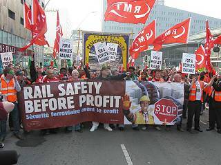| Lille (Frankreich), 13.4.2010 - Europäische Eisenbahner warnen vor Liberalisierung und Privatisierung der Bahn (Fotos: Peter Bach) |