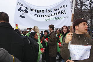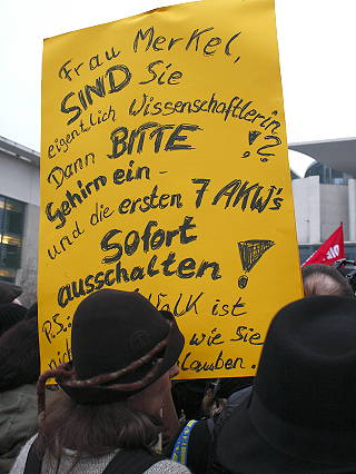 | Berlin, 14.3.2011 (2) - "Fukushima ist überall - Atomausstieg jetzt!" - Protest anläßlich des außer Kontrolle geratenen Atomkraftwerks in Japan (Fotos: Hartmut Ihlefeldt) |