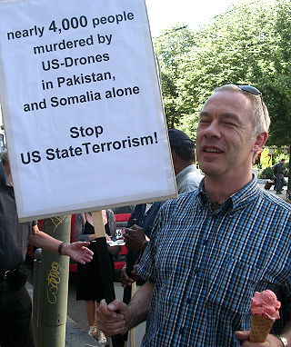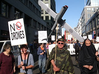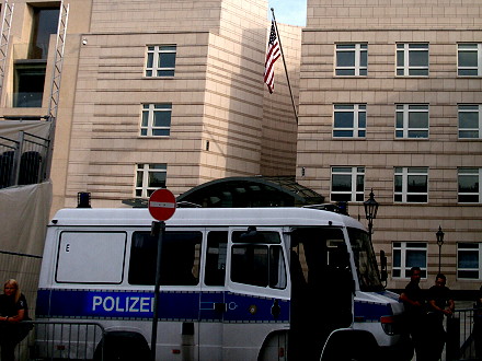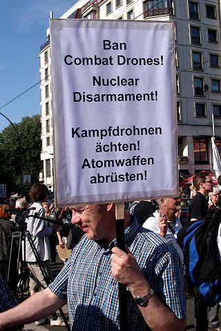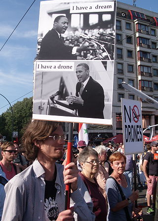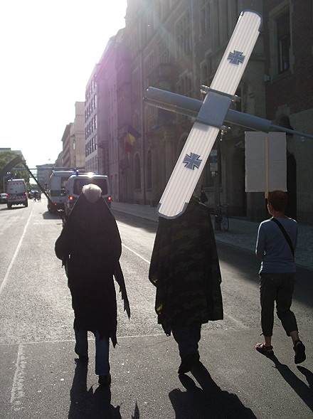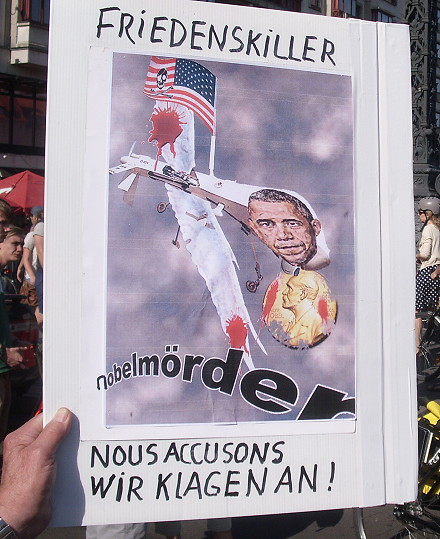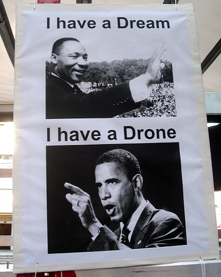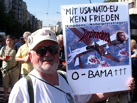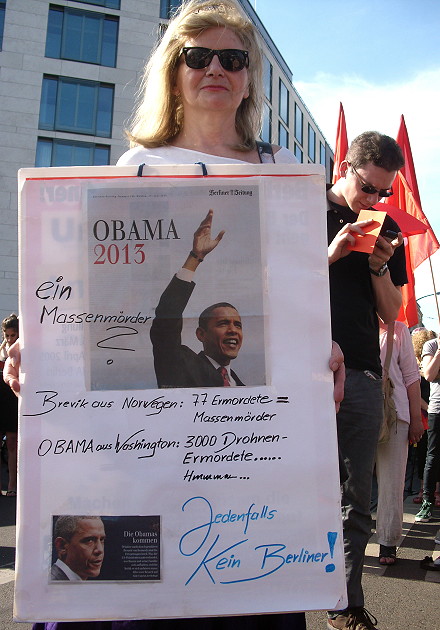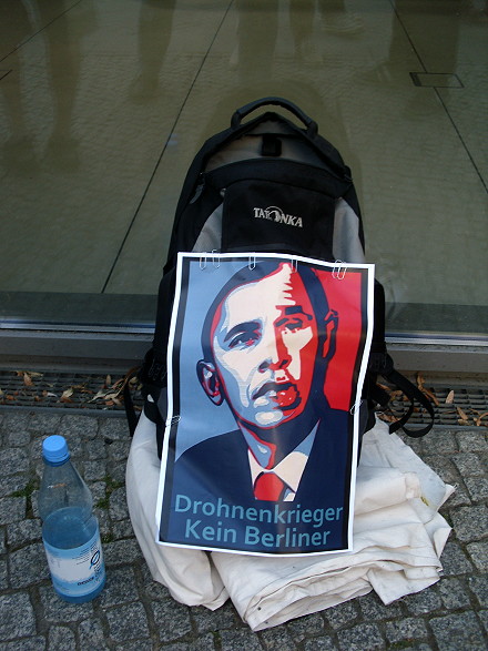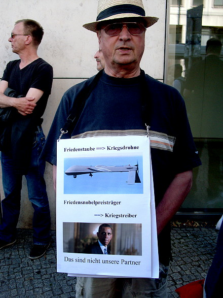 Bilder vom Protest am Tag vor dem Besuch des US-Präsidenten in Berlin - „I Have a Drone“ |
