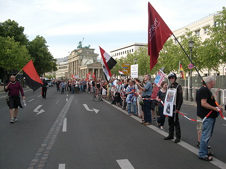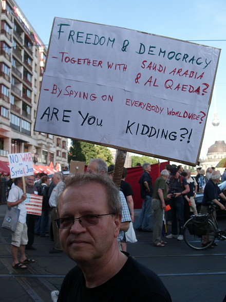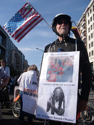 | Berlin, 17.6.2013 - "YES WE CAN: Obama die rote Karte zeigen" - Protest anlässlich des Besuchs von US-Präsident Obama in Berlin |