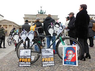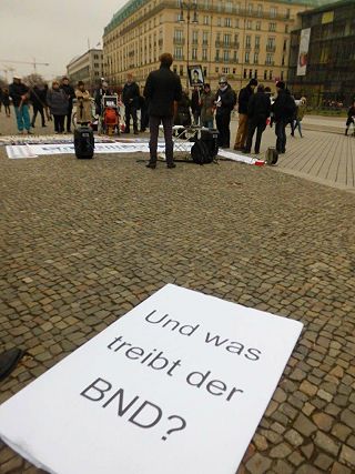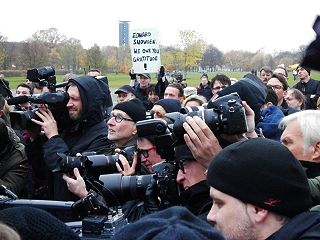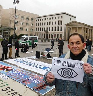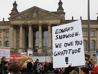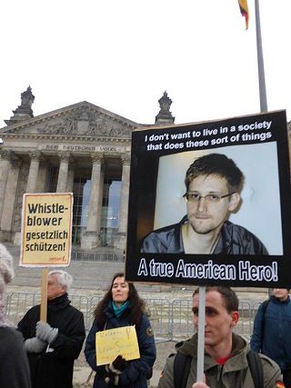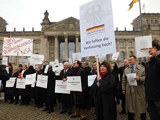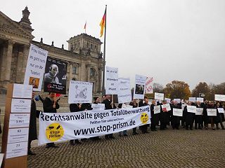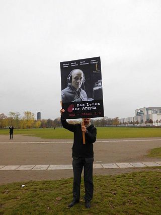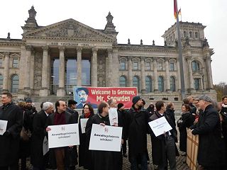 | Berlin, 18.11.2013 - "Welcome to Germany, Edward Snowden!" - Aktion anläßlich einer Sondersitzung des Bundestages zum Thema NSA |