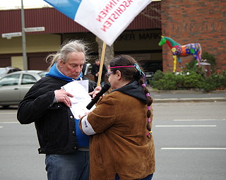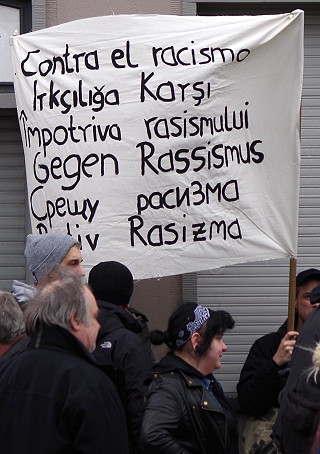 | Gelsenkirchen, 15.2.2014 - "Wir sind Schalker, ihr Rassisten nicht - Solidarität statt Rassismus" - Protest nach Überfall auf rumänische Familie (Fotos: Sven Kaiser) |