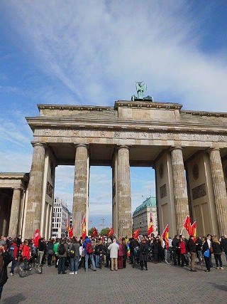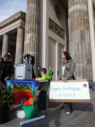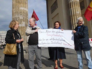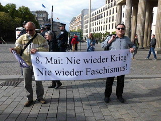 | Berlin, 8.5.2014 - Mahnwache "Nie wieder Krieg! Nie wieder Faschismus!" am Brandenburger Tor |