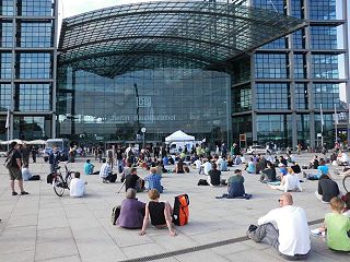 ![]() 3 Montagsmahnwache für Frieden sonst hier am Potsdamer Platz, heute auf dem Washingtonplatz am Hauptbahnhof |