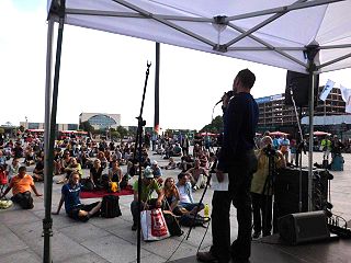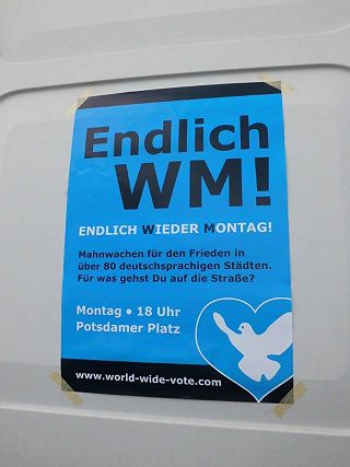 | Berlin, 7.7.2014 - Montagsmahnwache für globalen Frieden, Völkerverständigung, echte Demokratie und mehr Menschenrechte |