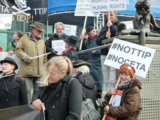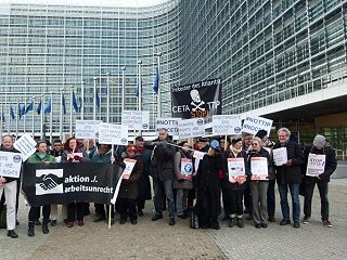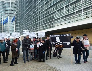 | Brüssel, 29.1.2015 - "Arbeitsrechte verteidigen: Freihandelsabkommen zwischen USA und EU stoppen!" - Unterschriftenübergabe an EU-Kommission (Fotos: Karl-Heinz Otten) |