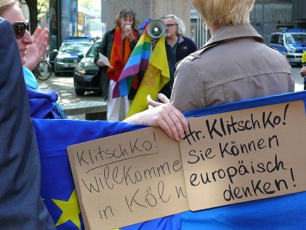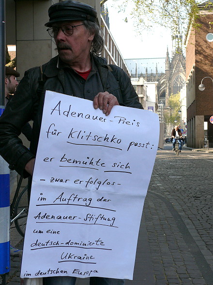| Köln, 23.4.2015 - Verleihung des Konrad-Adenauer-Preises der Stadt Köln an Kiews Bürgermeister Vitali Klitschko und der Protest dagegen |