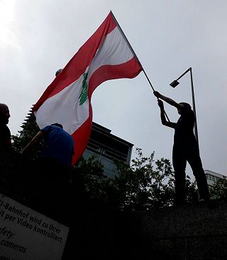 ![]() 10 Pro-Israel-Aufmarsch gegen den Al-Quds-Tag/Jerusalemtag (im Hintergrund) |