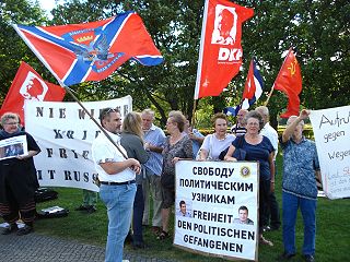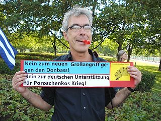 | Berlin, 24.8.2015 - "Wir pfeifen auf Poroschenko" - Protest anläßlich des Besuchs des Präsidenten der Ukraine bei Bundeskanzelerin Merkel (Fotos: Alant Jost) |