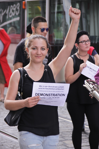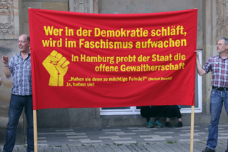 | Bremen, 7.7.2017 - Demonstration "Wer in der Demokratie schläft, wird im Faschismus aufwachen" (Fotos: Georg Maria Vormschlag) |